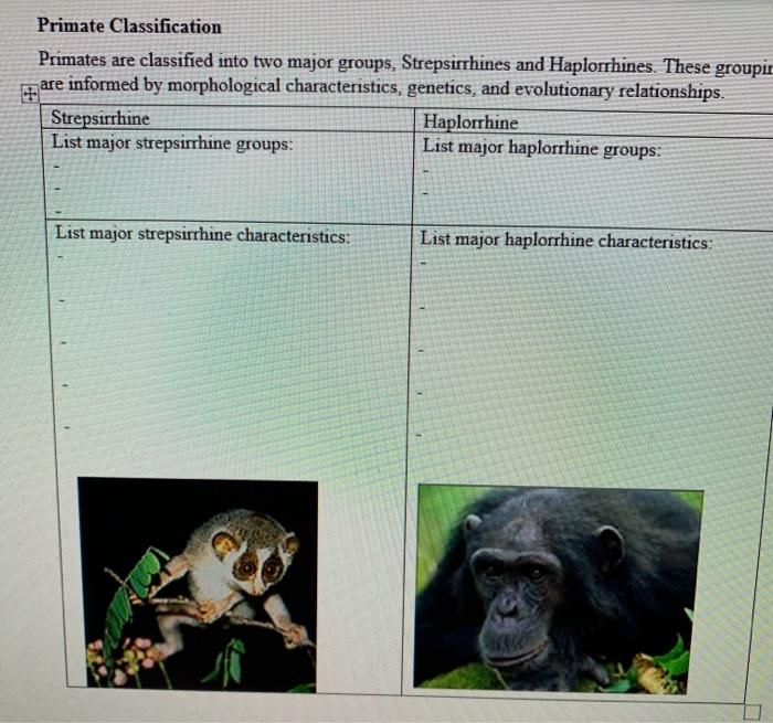 Solved Primate Classification Primates Are Classified Into Chegg Com